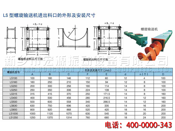 Helpful hints: screw conveyor is unfavorable and transportation of perishable materials, big viscosity, easy to agglomerate, because these materials in the transmission will be binding on the screw, and then rotate and does not move forward or in suspension bearing formation material product plug, and make the screw machine can't work normally.LS screw machine screw diameter from 200 mm to 500 mm, with a total of five kinds of specifications, the length from 4 meters to 70 meters, one every 0.5 meters, conform to the standard model selection of the nominal length, special needs can be separately in the matching section is put forward.
